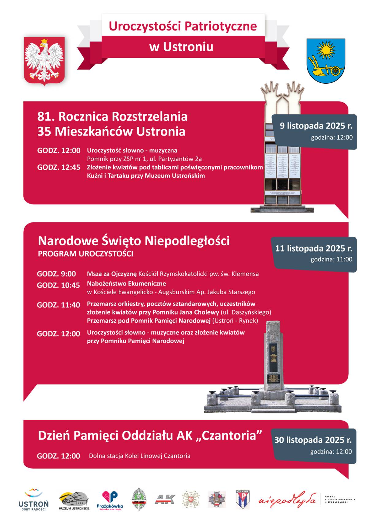 godz. 12.00 Uroczystości słowno - muzyczne oraz złożenie kwiatów