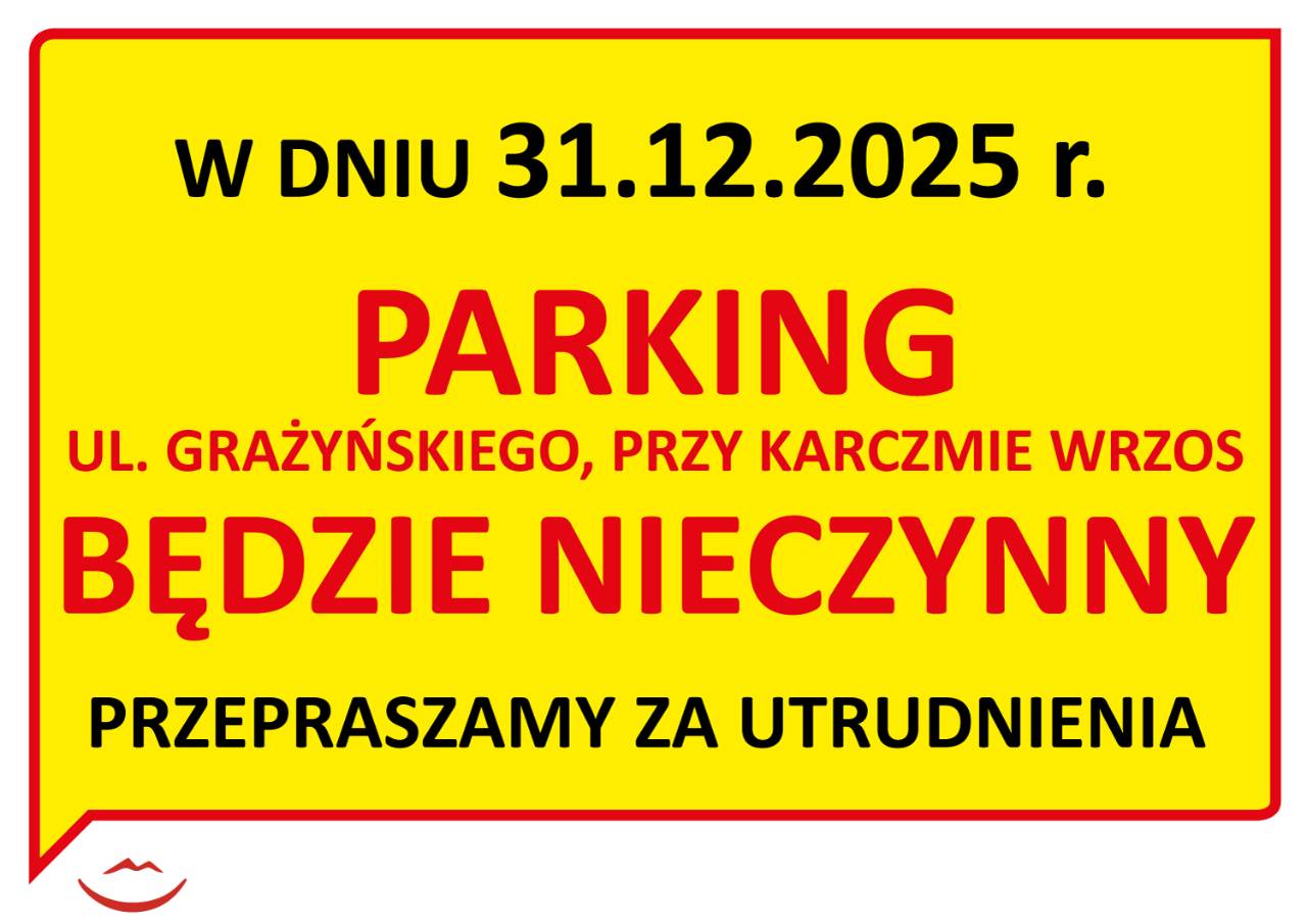 W dniu 31.12.2025 r. parking ul. Grażyńskiego, przy Karczmie Wrzos będzie NIECZYNNY.