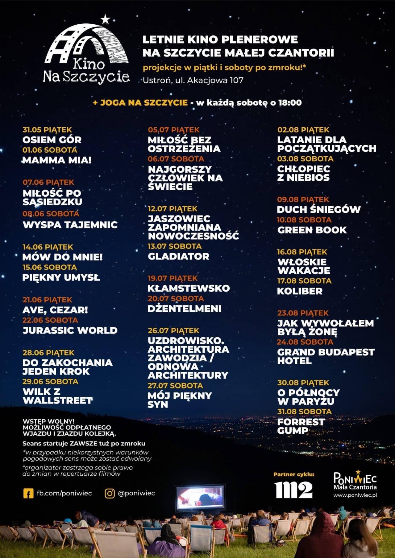 w przypadku niesprzyjających warunków pogodowych seans zostanie odwołany lub przeniesiony na inny termin.