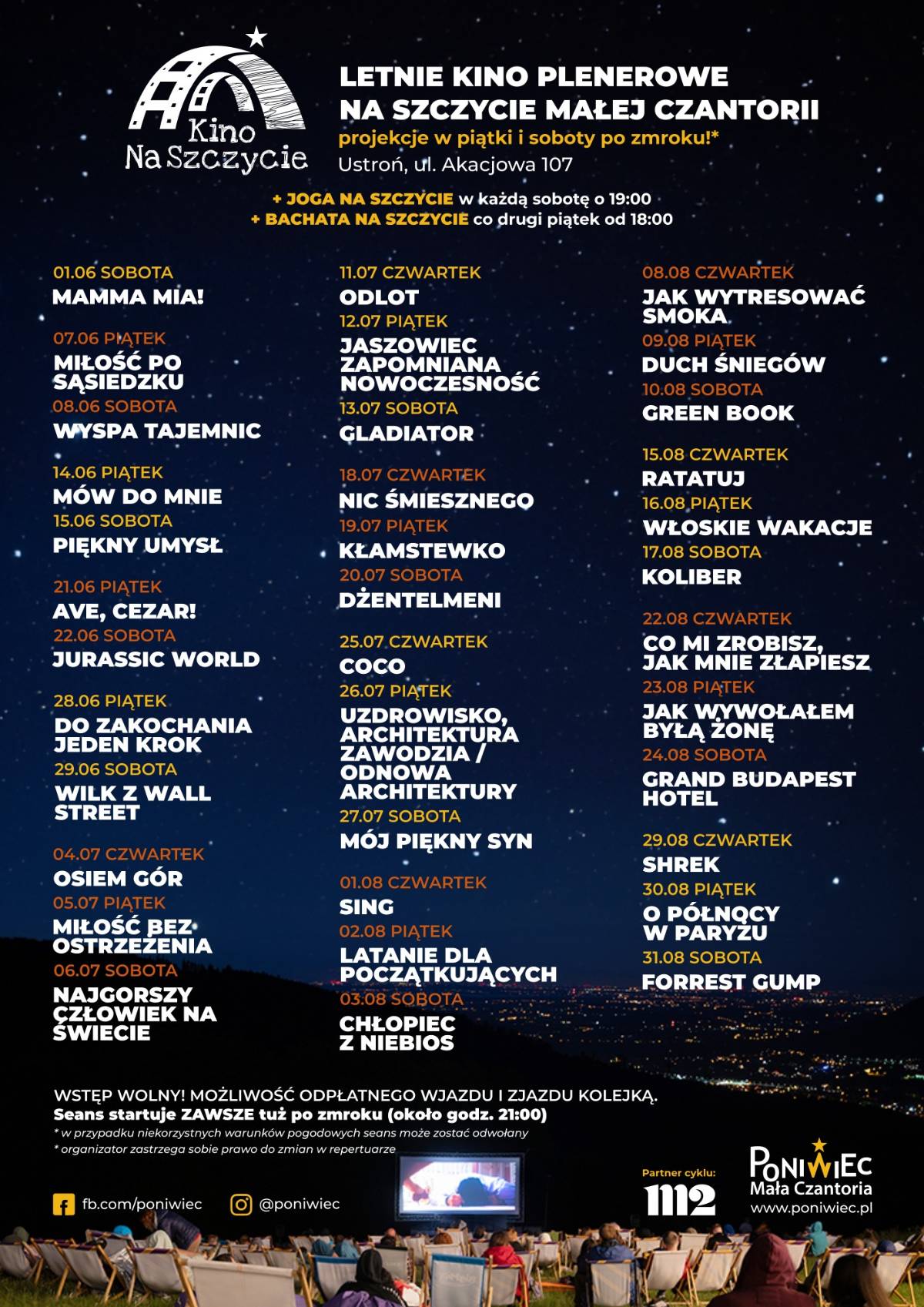 - Udział jest bezpłatny, jednak wydarzenia wspomagają działalność naszego ośrodka latem - dlatego będziemy wdzięczni za odpłatne korzystanie z naszej kolei i z punktu gastronomicznego dostępnego podczas seansów,