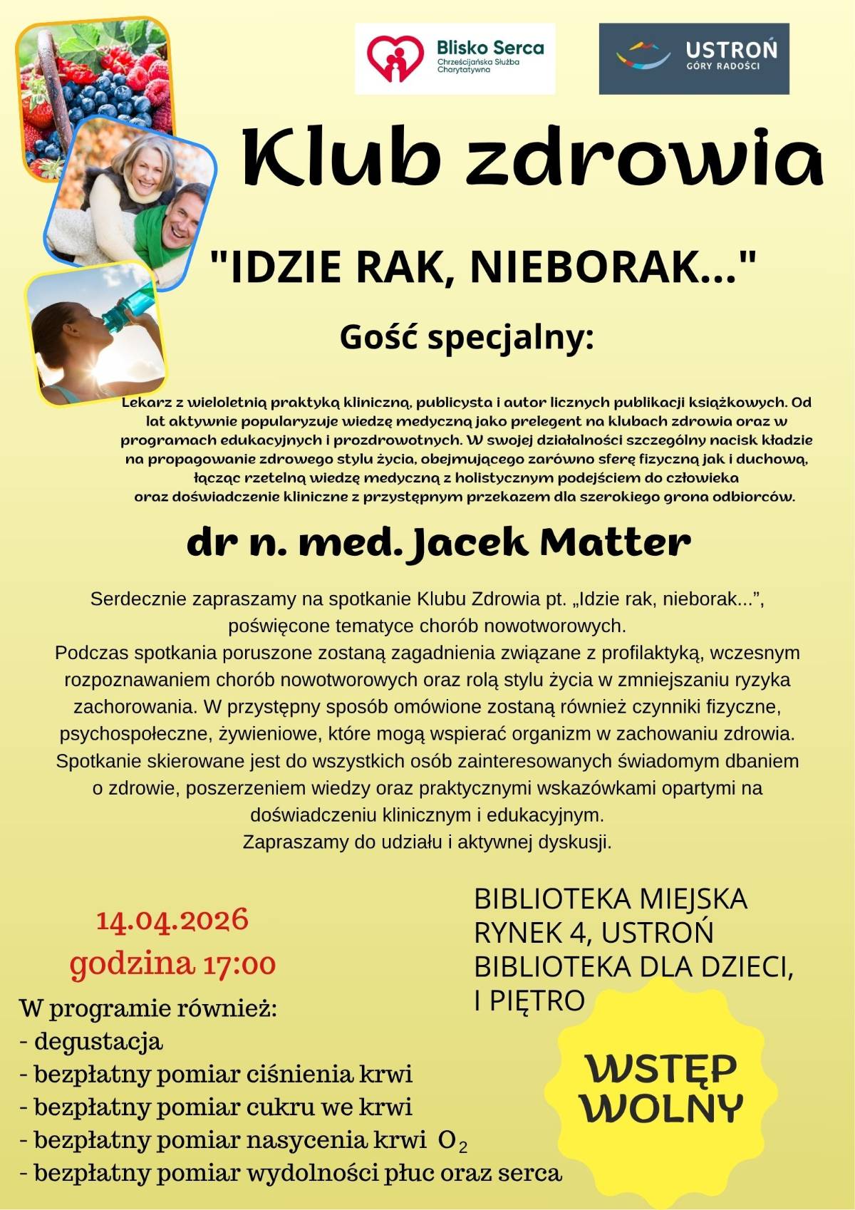Klub Zdrowia zaprasza na wykład pt. „Idzie Rak, Nieborak...”, poświęcony tematyce chorób nowotworowych.