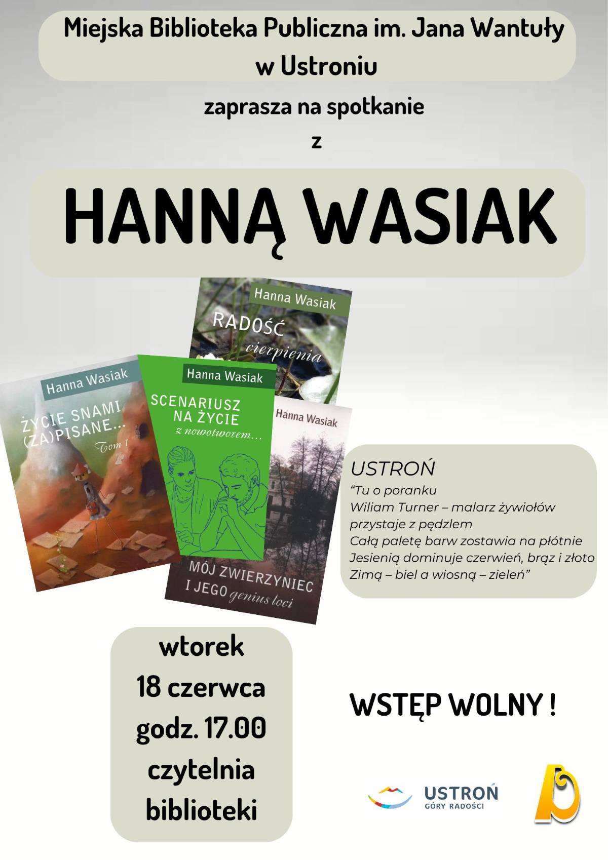 Zapraszamy serdecznie na spotkanie z Panią Hanną! Wstęp wolny!