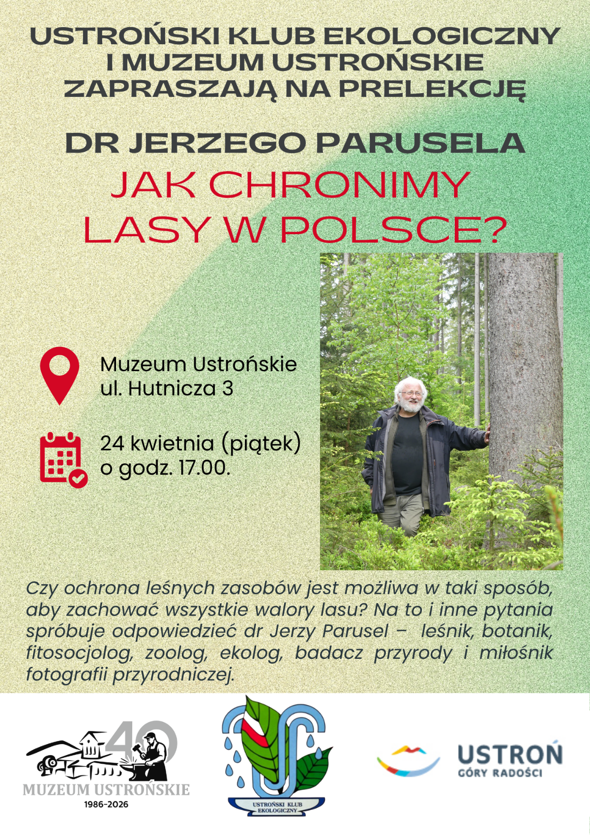 Muzeum Ustrońskie i Ustroński Klub Ekologiczny zapraszają na wykład doktora Jerzego Parusela "Jak chronimy lasy w Polsce?"